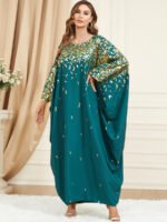 Richly decorated with gold embroidery and vibrant tones, this flowing abaya celebrates elegance and tradition. Perfect for Eid, weddings, and festive gatherings.