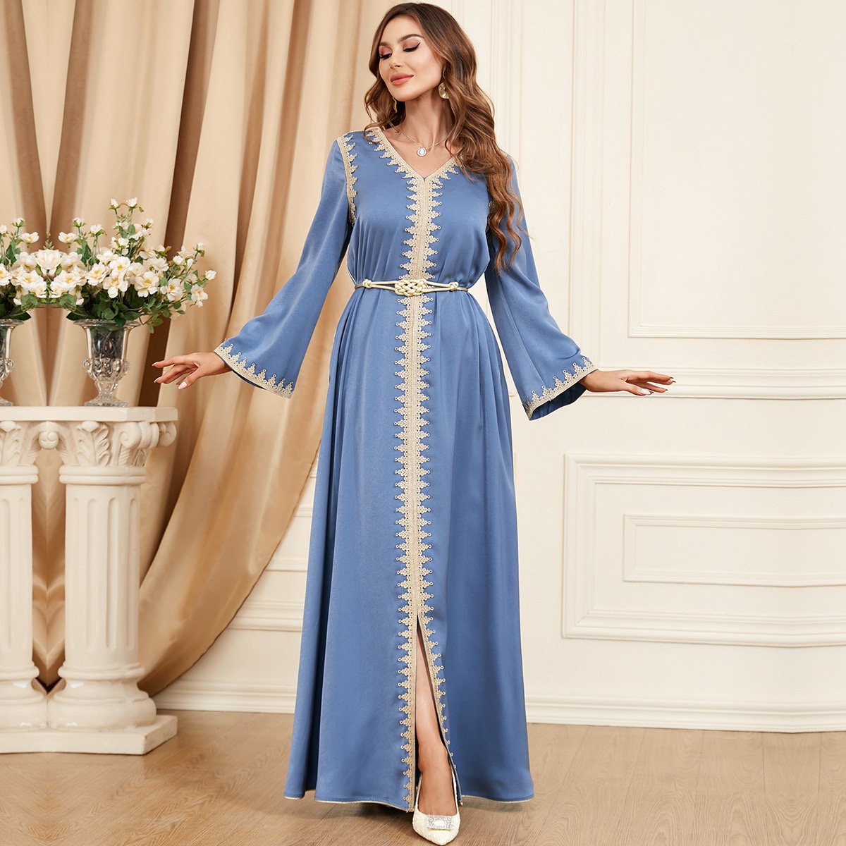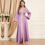 Charming in its simplicity, this soft lilac jalabiya with golden embroidery is perfect for spring gatherings and everyday elegance 🌸🌙