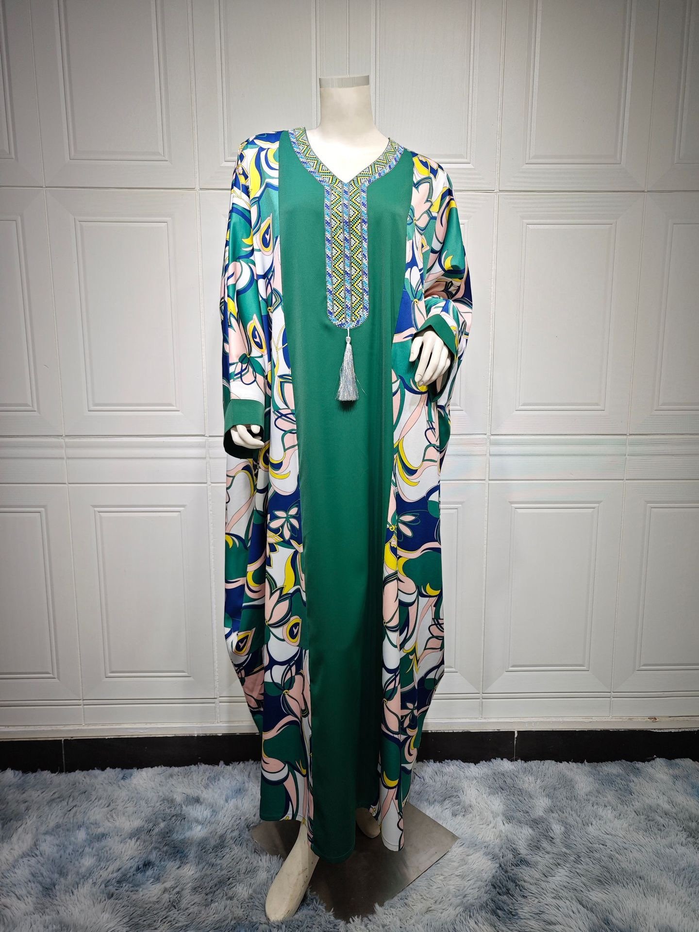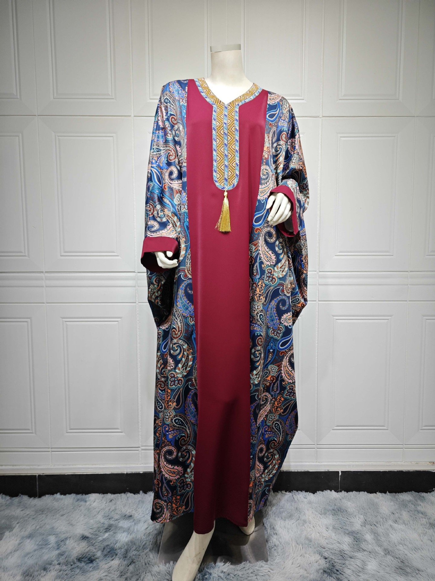 Make a statement in this modern jalabiya with bold prints and a relaxed silhouette — perfect for daytime chic or cozy evenings at home 🌸🕌