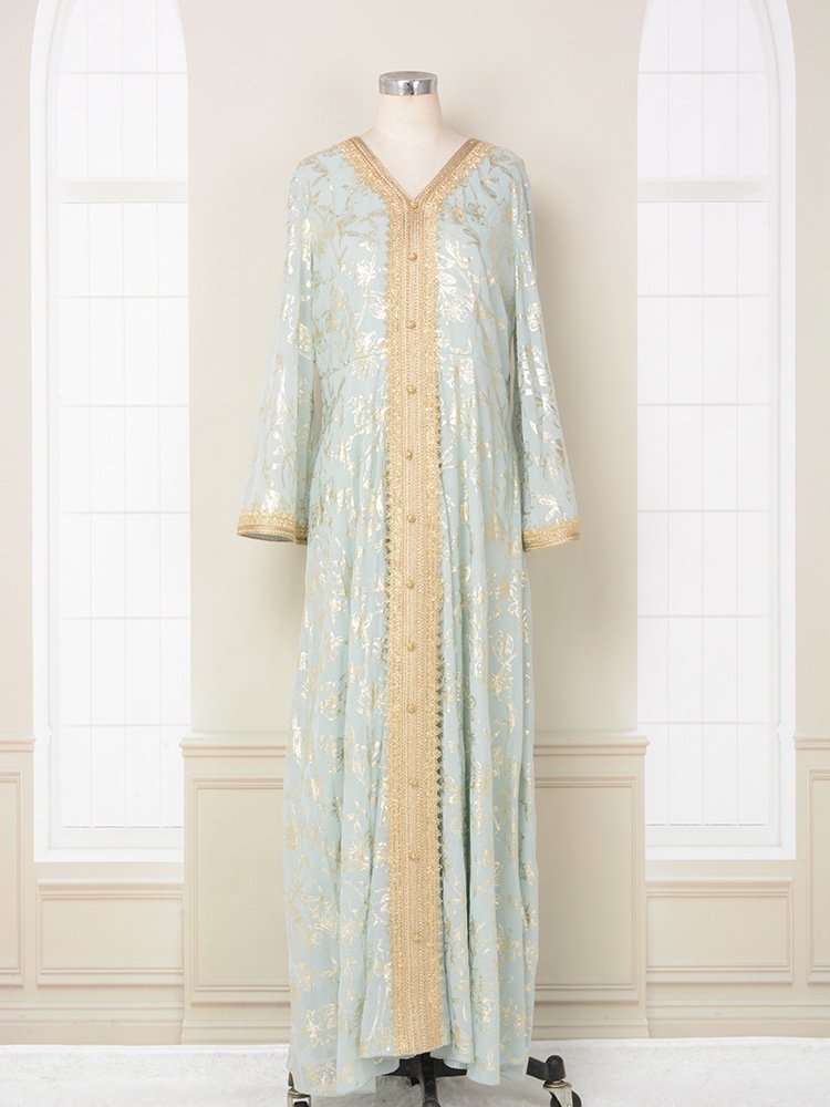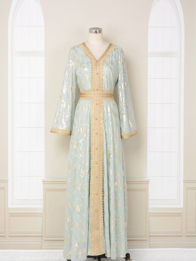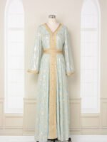 This pastel blue jalabiya shimmers with golden accents, offering a graceful presence for weddings, Ramadan nights, or refined events. A soft, regal touch that feels timeless 🌙💫