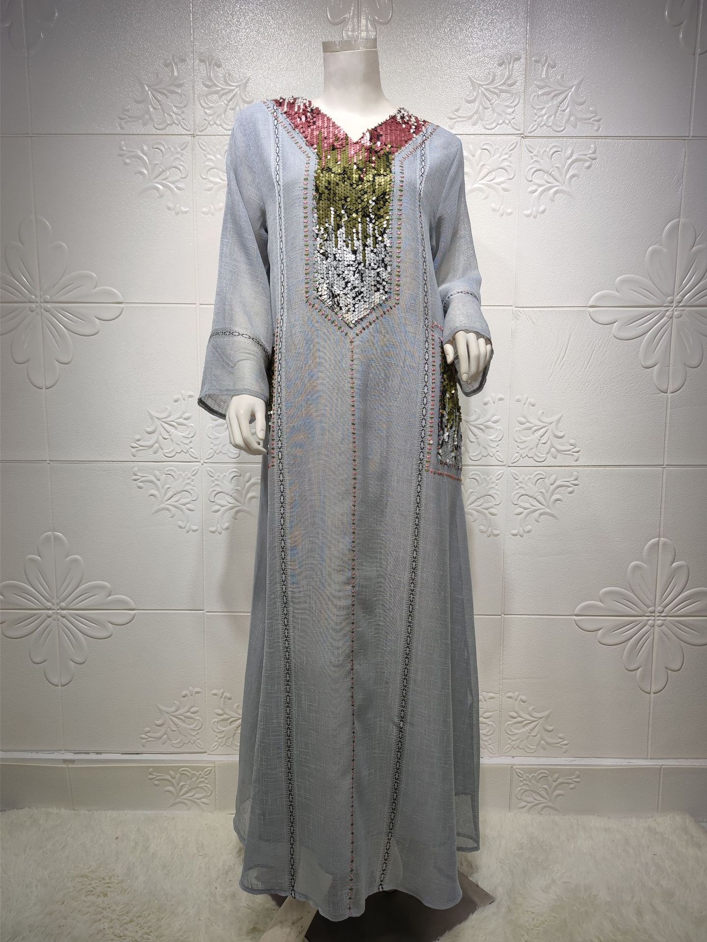 A dazzling statement piece featuring ombré sequins and soft flowing fabric — perfect for weddings, special soirées, or Eid evenings 🌸💫